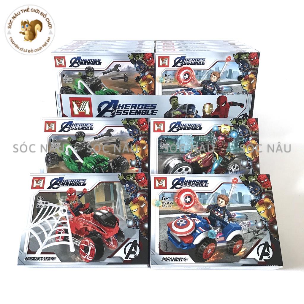 Đồ chơi lắp ráp xếp hình lego siêu anh hùng MG250 người sắt ironman, người nhện spiderman, captain america, Green man (lẻ)
