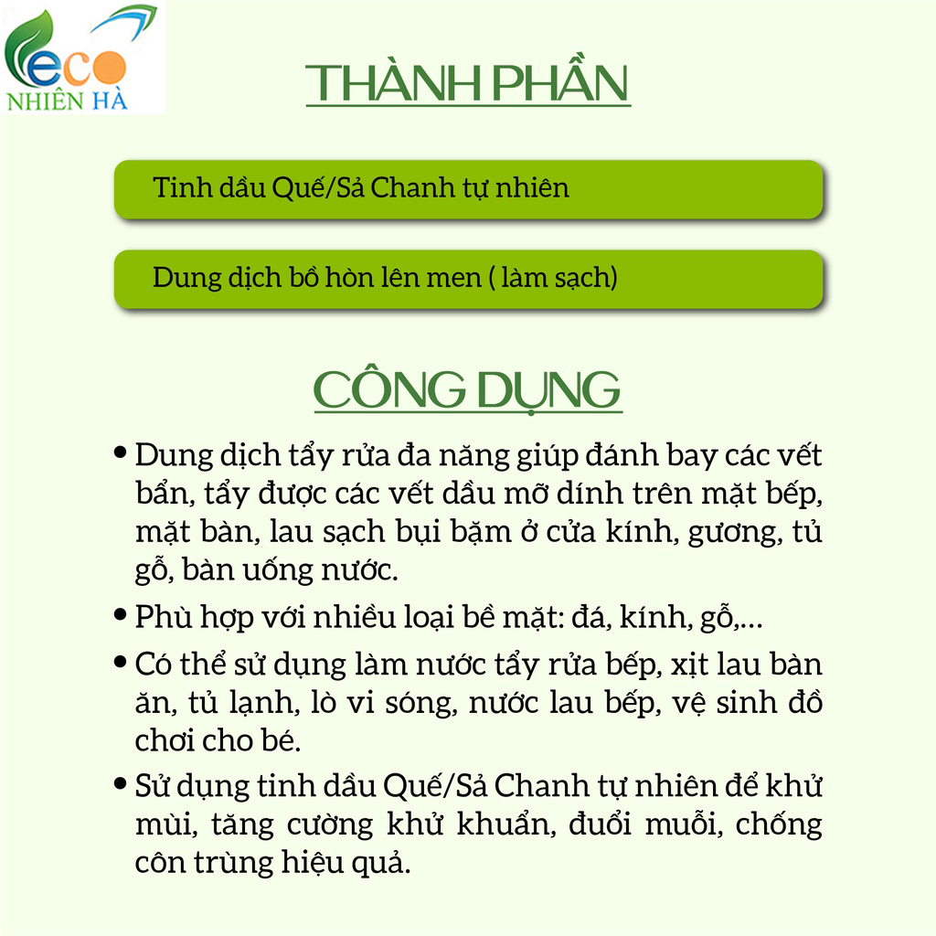 ► Nước lau bàn ăn Ecocare, nước lau kính, lau bếp sử dụng tinh dầu thiên nhiên để khử mùi, khử khuẩn, đuổi muỗi, đuổi côn trùng