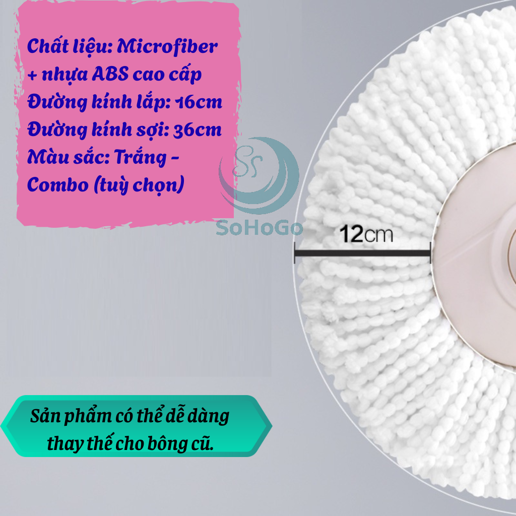 Bông lau nhà thay thế bằng sợi microfiber cao cấp, thiết kế dạng tròn với vành nhựa cứng chắc chắn, phù hợp cho các loại cây lau nhà xoay 360 độ phổ biến trên thị trường. Sản phẩm có thể dễ dàng thay thế cho bông cũ, giúp lau sạch hiệu quả, tiết kiệm thời gian và công sức.