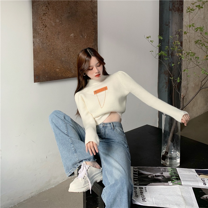 Giới thiệu LEEVA - Áo len nữ cổ cao phối tag len dày mịn A225