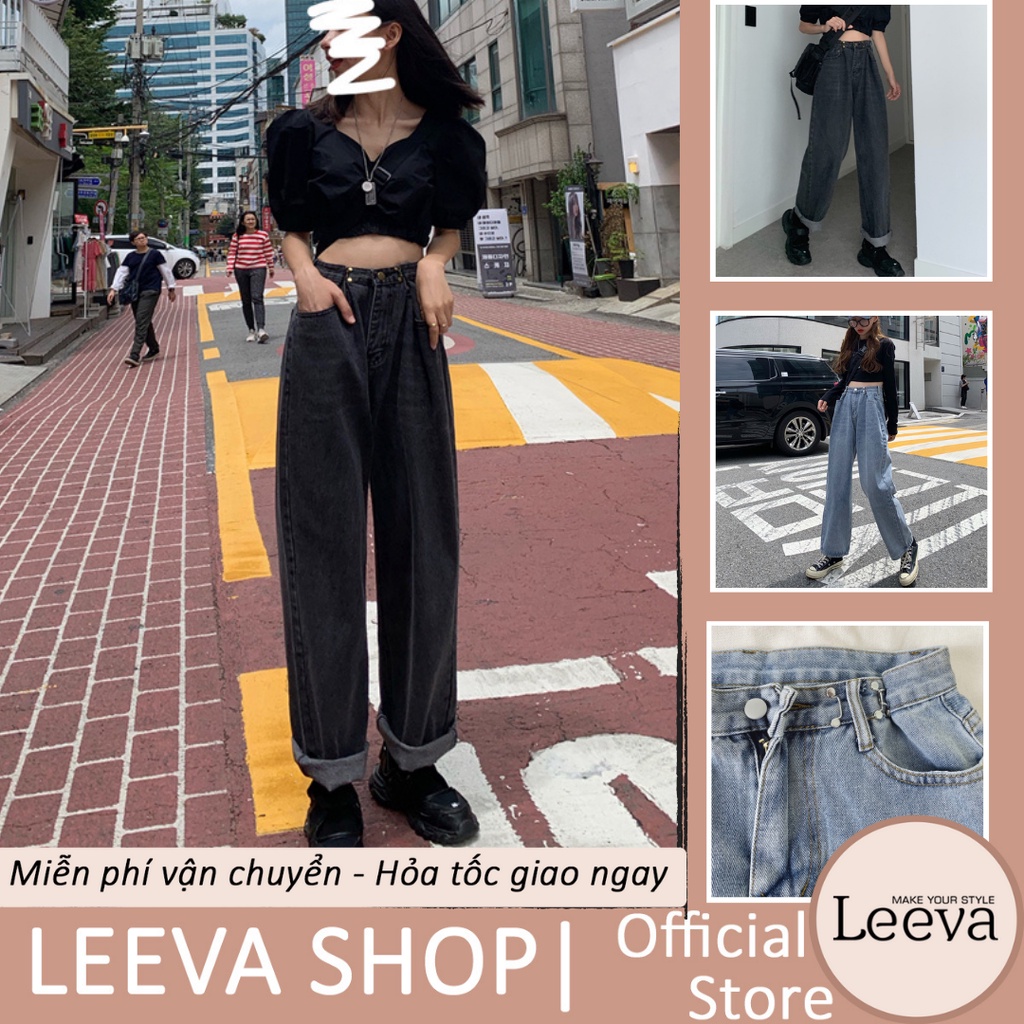 Giới thiệu LEEVA - Quần jeans dài nữ ống rộng nút cài eo Q032