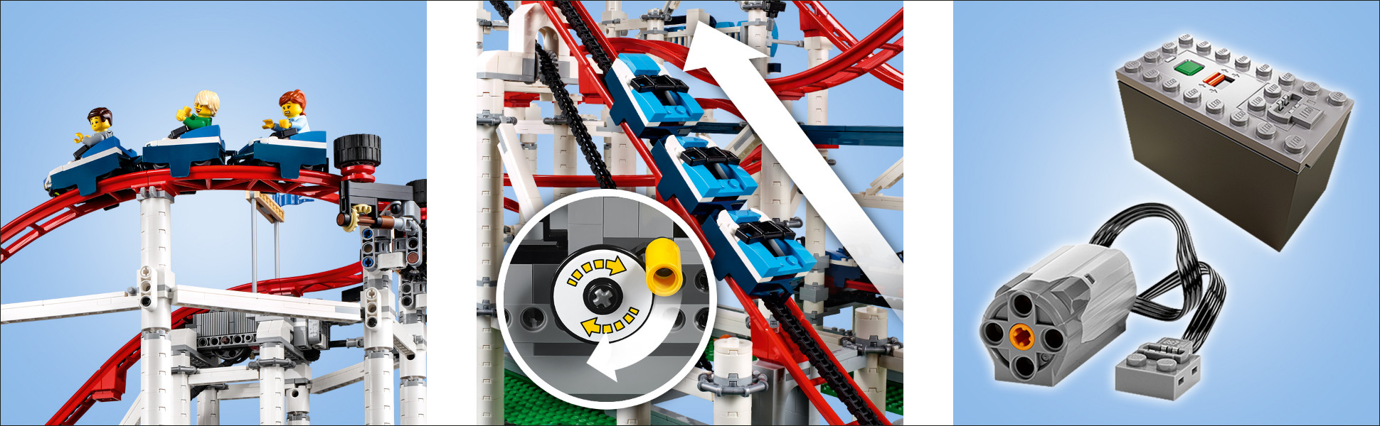 • Nâng cấp Tàu lượn siêu tốc với Chức năng Nguồn của LEGO cho thang máy bằng xích có động cơ hoặc với LEGO BOOST để kích hoạt thang máy bằng xích tự động và hiệu ứng âm thanh trung thực!