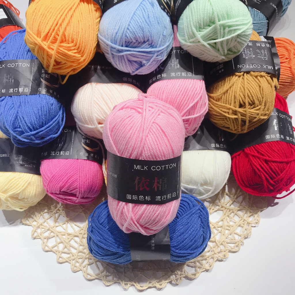 Tên sản phẩm: Len cuộn 50g cotton milk mã màu 1 - màu 35, len mác đen bền đẹp, sợi nhẹ chuyên dùng cho đan móc