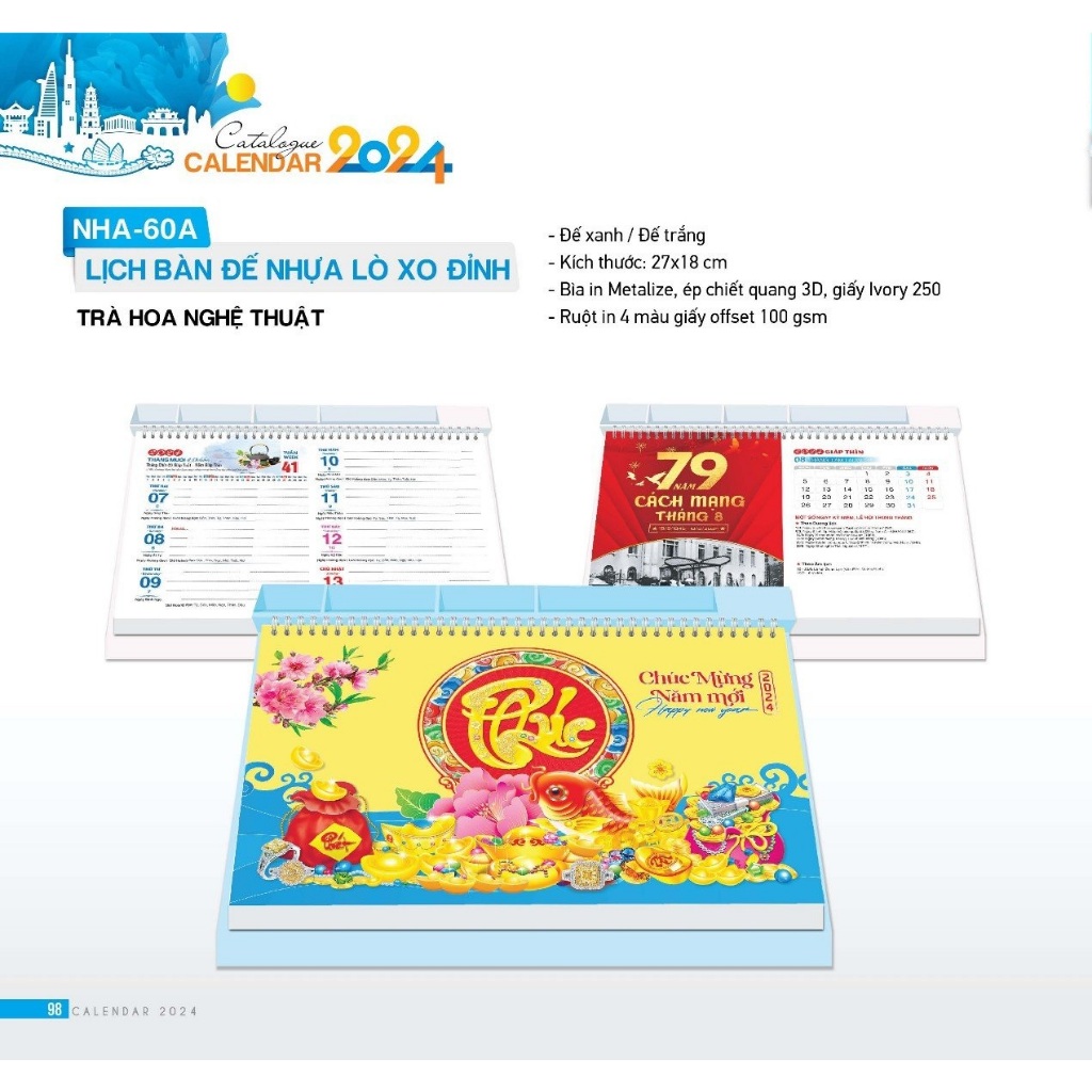 200Lịch Để Bàn Đế Nhựa Lò Xo Giữa -Lịch Tết 2024 Giáp Thìn - Quà Tặng Năm Mới