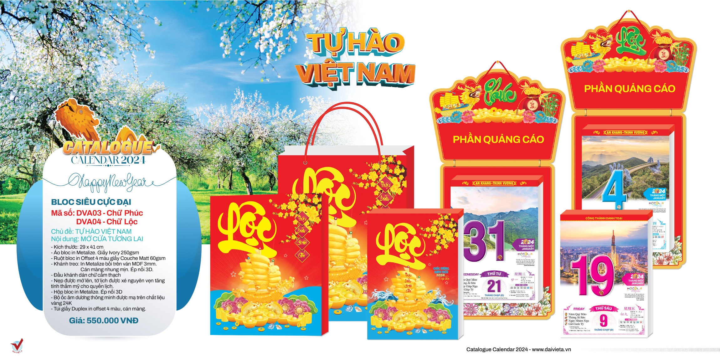 Lịch Treo Tường Tết 2024 Bloc Siêu Cực Đại Đặc Biệt KT 29X41CM - Quà Tặng Tết Cao Cấp DVA03 & 04