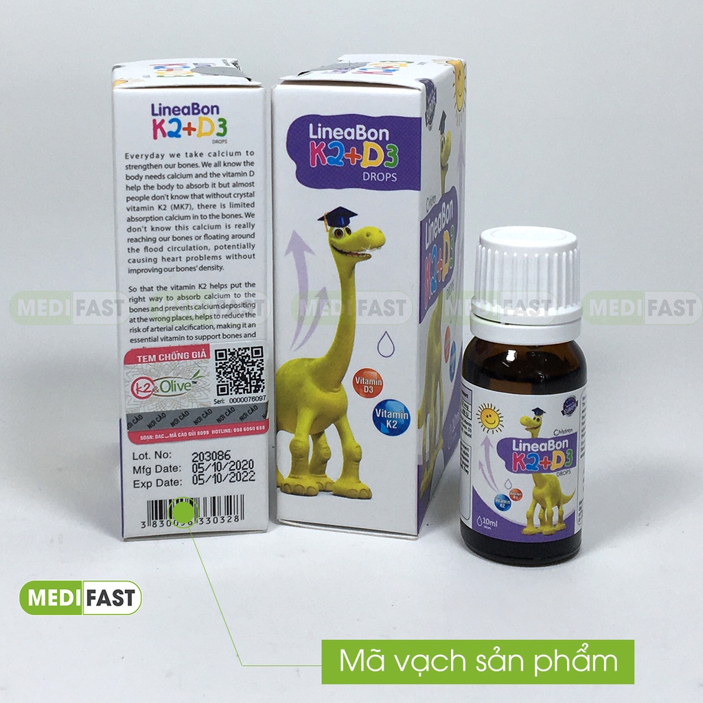 Lineabon bổ sung K2 và D3 - giúp hấp thụ canxi hiệu quả - giúp xương chắc khỏe, trẻ cao lớn - có tem tích điểm đổi quà