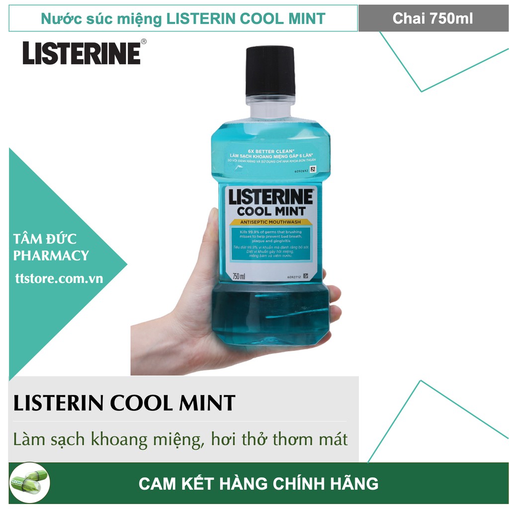 LISTERINE COOL MINT [Chai 750ml] - Nước súc miệng listerin diệt khuẩn, giữ hơi thở thơm mát