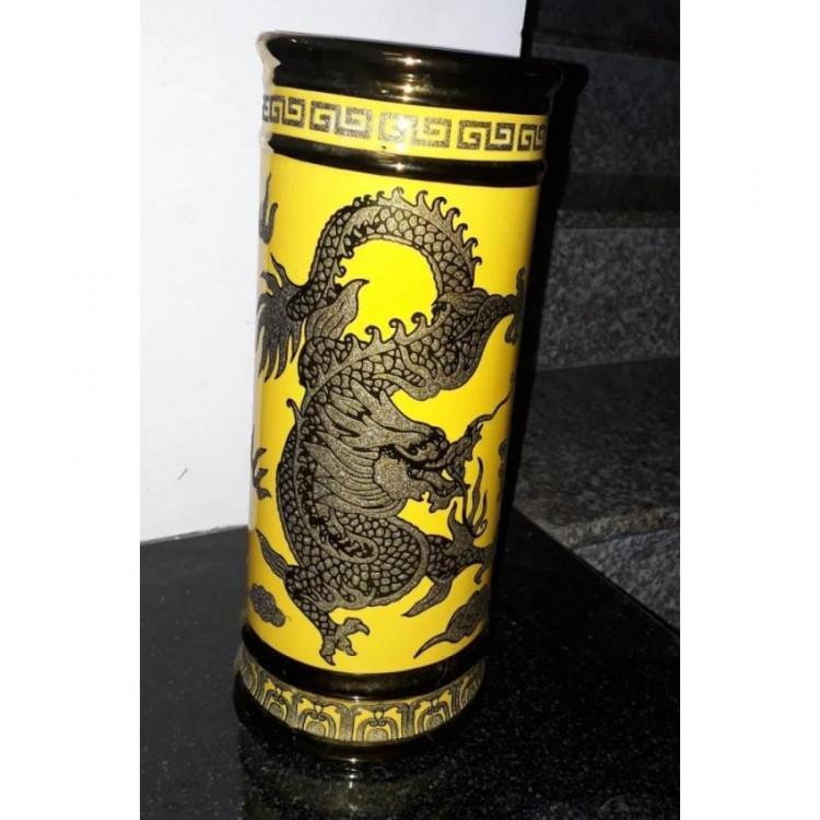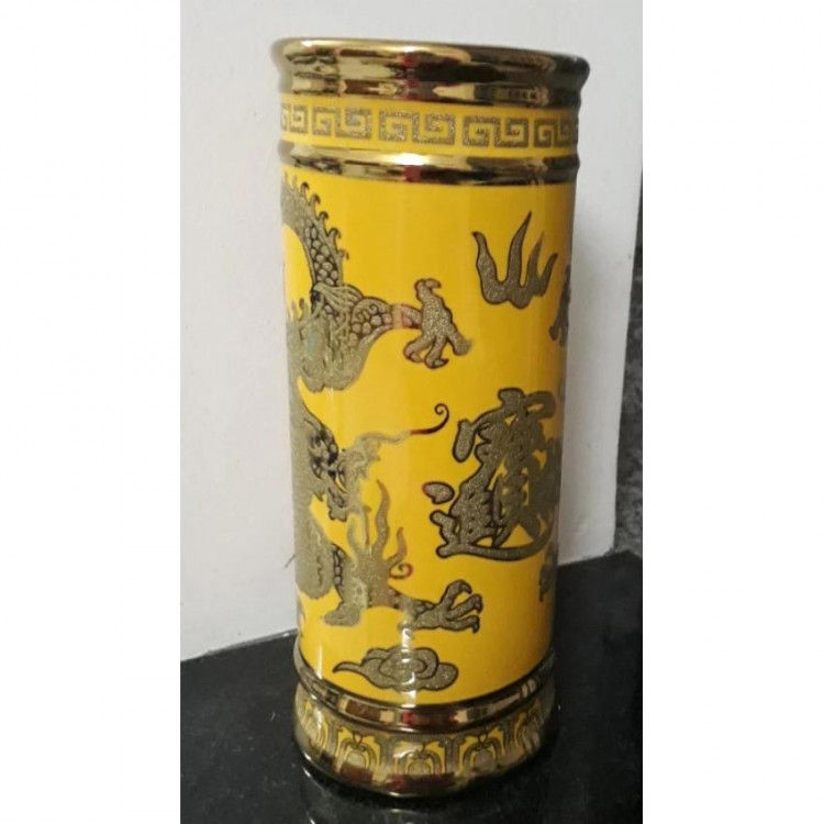 Lọ cắm hương trên bàn thờ 21 cm (Màu vàng) họa tiết song long chầu nguyệt có khắc chữ không những dùng để trang trí, mang đến không gian thờ cúng nhiều màu sắc, tượng trưng cho sự sinh sôi, phát triển mà còn có ý nghĩa để cắm hương gọn gàng hơn. Mỗi khhi thắp hương lấy hương dễ dàng và chân hương không bị gãy, xếp đều nhau.