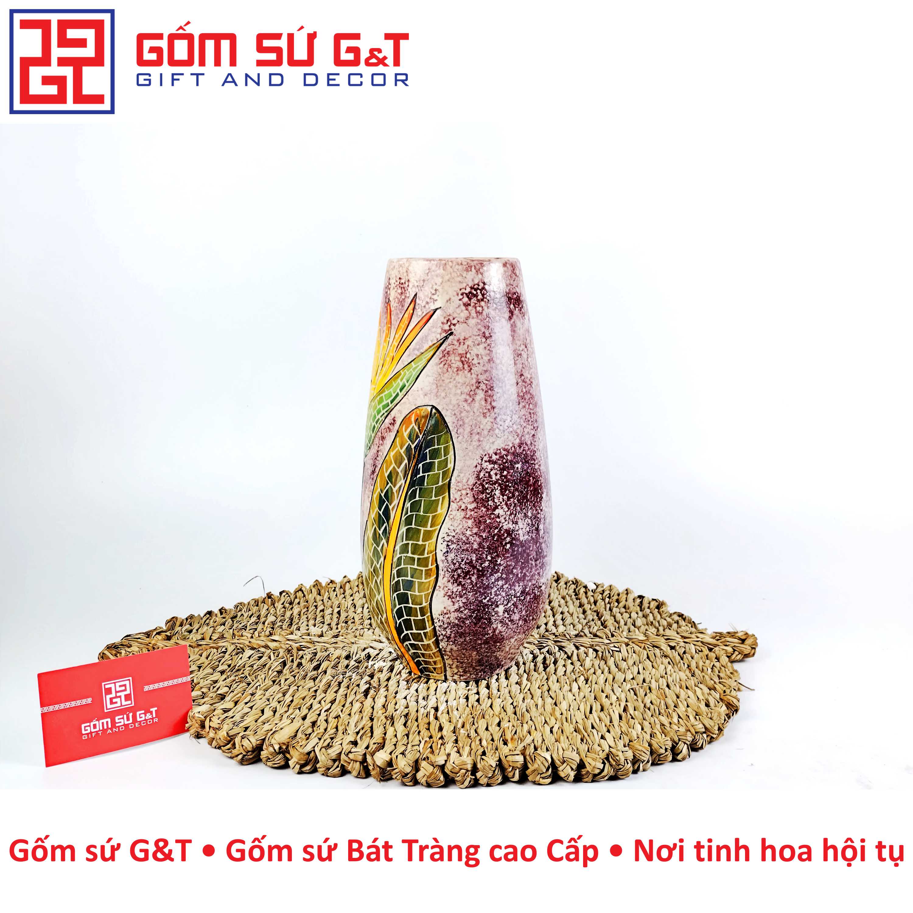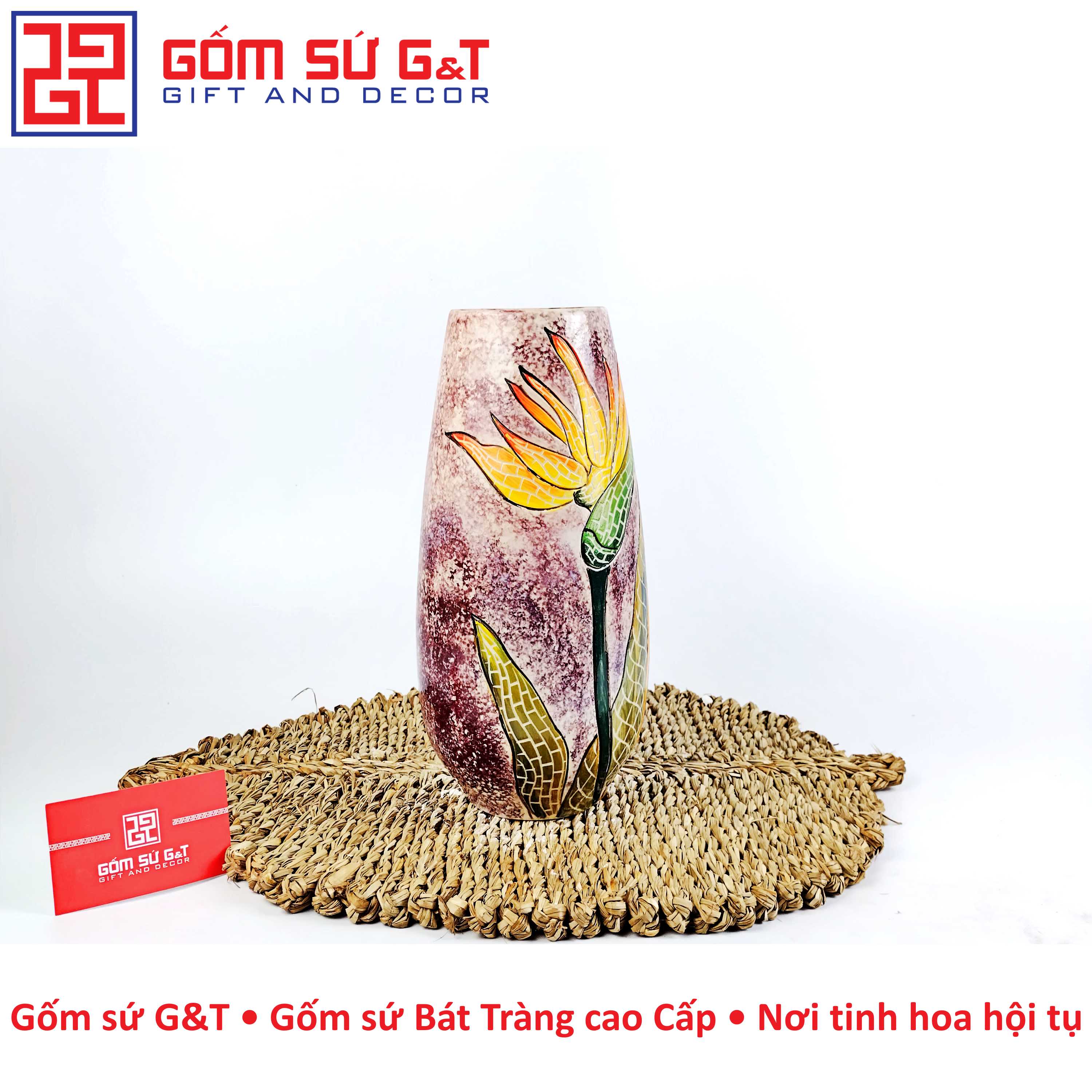 Từng chi tiết của lọ hoa bom miệng rộng hoa thiên điểu đều được thực hiện thủ công bởi những người nghệ nhân tài hoa. Sự tập trung vào từng chi tiết, việc chọn lựa màu sắc phù hợp và cách phối màu sao cho tạo nên một mẫu hoa tinh tế là điều đòi hỏi sự tỉ mỉ và kiên nhẫn. Mỗi sản phẩm là một tác phẩm nghệ thuật mang hơi thở của người nghệ nhân và là biểu tượng của sự đam mê và tình yêu với nghệ thuật gốm.