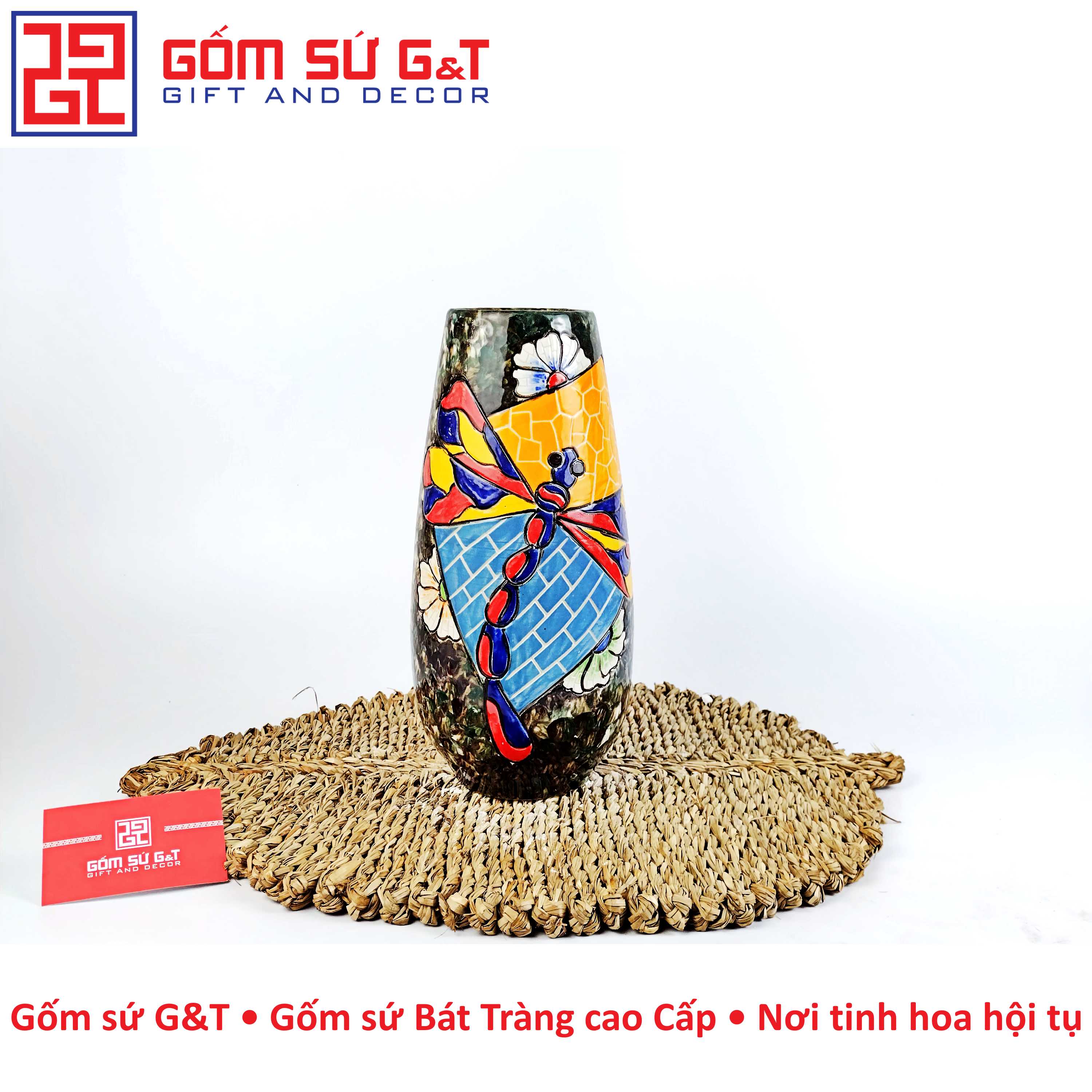 Từng chi tiết của lọ hoa dáng bom miệng rộng chuồn chuồn đều được thực hiện thủ công bởi những người nghệ nhân tài hoa. Sự tập trung vào từng chi tiết, việc chọn lựa màu sắc phù hợp và cách phối màu sao cho tạo nên một mẫu hoa tinh tế là điều đòi hỏi sự tỉ mỉ và kiên nhẫn. Mỗi sản phẩm là một tác phẩm nghệ thuật mang hơi thở của người nghệ nhân và là biểu tượng của sự đam mê và tình yêu với nghệ thuật gốm.