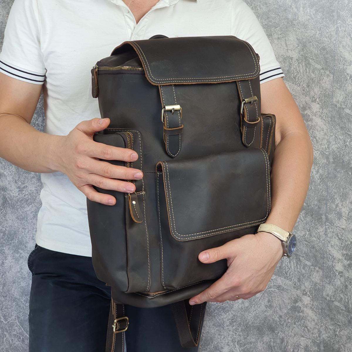 - Hoàn toàn được làm từ da bò thật 100%, dòng da sáp cao cấp sang trọng, lịch lãm