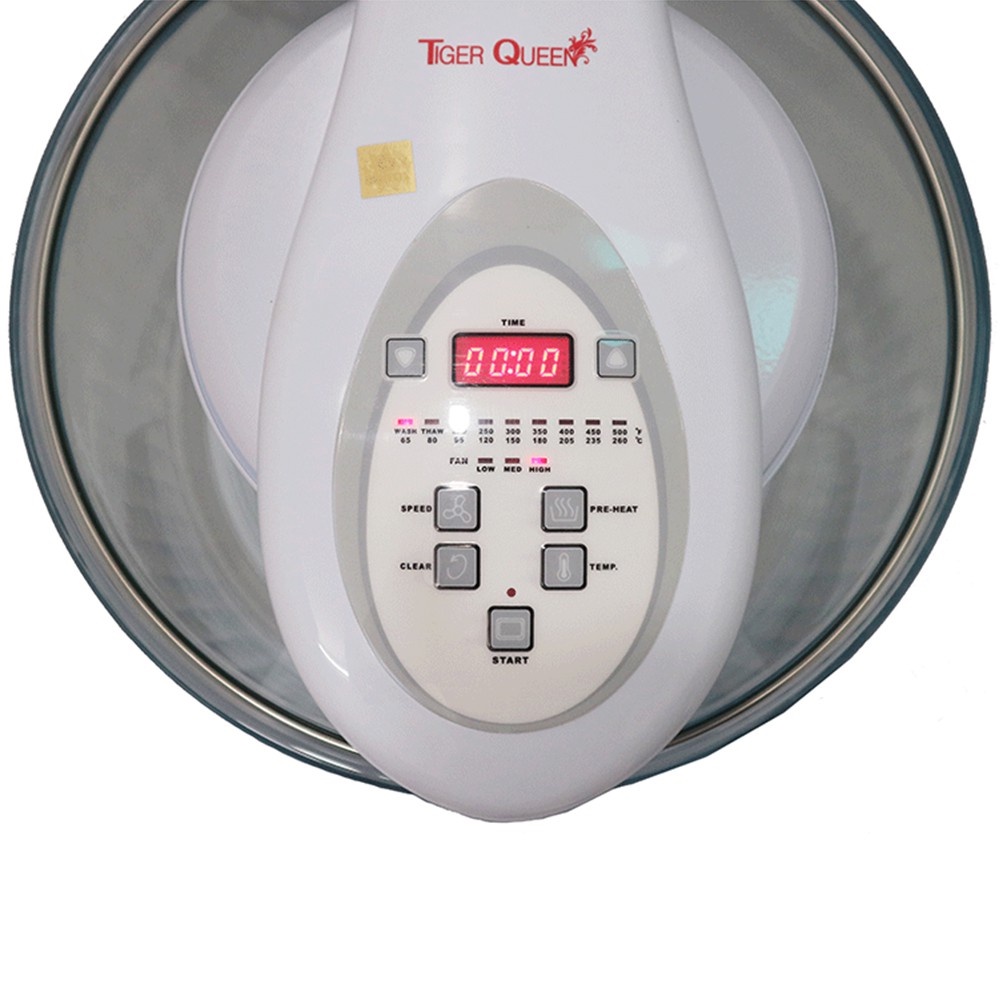 Lò nướng điện tử thủy tinh hiệu Tiger Queen AX-798DV nướng đối lưu từ 65-260ºC, màn hình LCD, đồng hồ cài đặt 23 giờ 59 phút, quạt 3 tốc độ, chậu thủy tinh Pháp, màu trắng. Có nhiều chức năng : Quay, nướng, nướng bánh, hấp, khử nước, xả đông, chiên chân không….