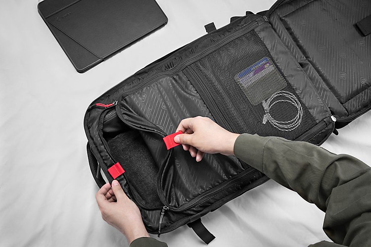 ngăn: Ba lô có 3 ngăn chứa rộng rãi với hơn 15 túi. Một ngăn chính và một ngăn phụ kiện, rộng rãi cho iPad, chuột, bộ sạc, sách, quần áo, ví, vv Một ngăn đựng laptop riêng biệt chứa tới 15” và ipad