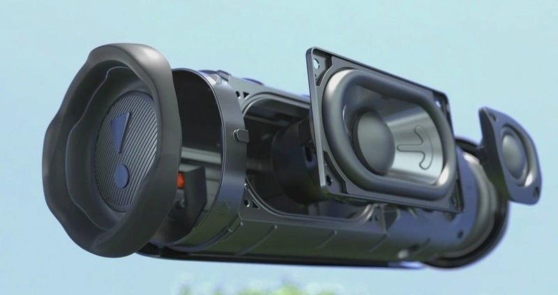 JBL Flip 6 được trang bị hệ thống loa hai chiều giúp mang lại âm thanh lớn và đầy uy lực. Thiết kế dải loa woofer đường vòng đua mang lại âm trung trọn vẹn, âm cao trong, âm trầm sâu lắng.