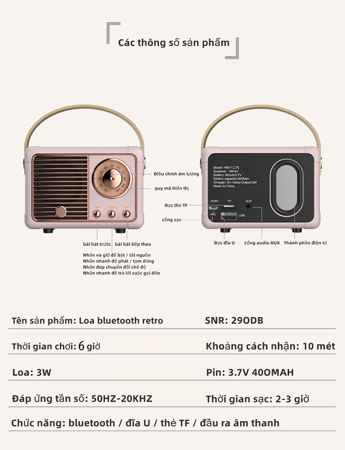 4. Loa Bluetooth đa chức năng retro, điều chỉnh núm cổ điển, điều chỉnh âm lượng vô cấp.