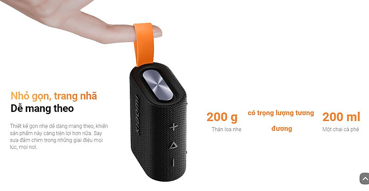 Thiết kế cực kỳ đơn giản, loa đặt được cả chiều ngang và chiều dọc, giúp thiết bị thích nghi với bất kỳ hoàn cảnh nào. Tông màu đen tinh tế điểm xuyết chút sắc cam rực rỡ để tạo ra một sự kết hợp màu sắc ấn tượng và độc đáo, thể hiện cá tính.