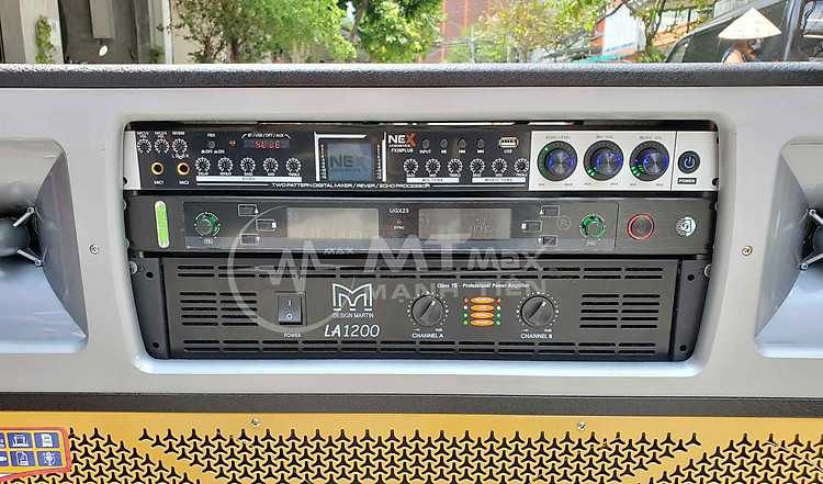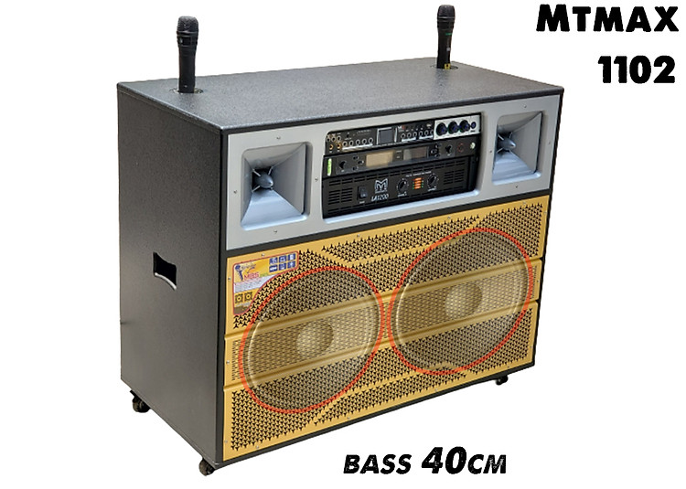 Loa kéo di động MTMax 1102 - Dàn karaoke ngoài trời bass 4 tấc đôi ngang, 2 treble - Loa khủng long công suất cực lớn đến 2400W - đầy công suất 24 sò LA1200 (design martin) - Vang fx30 - Micro ugx23 Đầy đủ kết nối Bluetooth, AV, USB, SD card, TWS - Thùng gỗ cao cấp cho âm thanh mạnh mẽ, chân thực