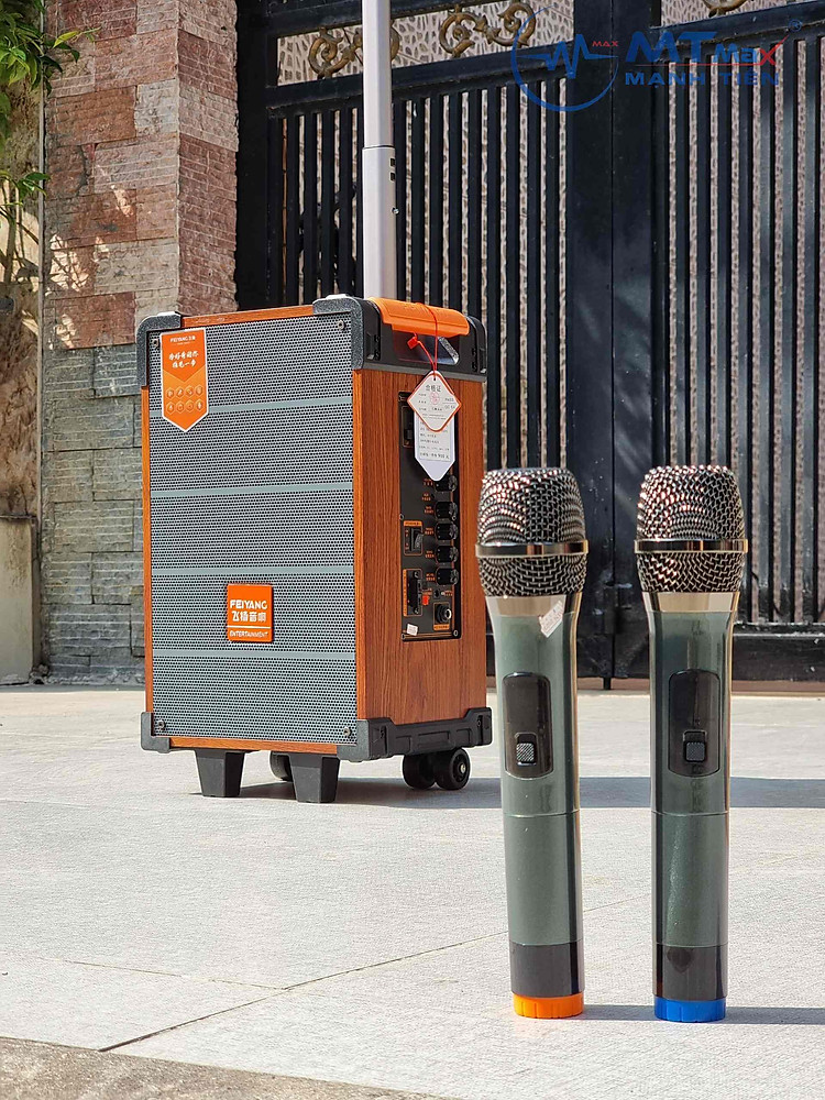 Vẻ ngoài mới lạ với sự kết hợp giữa thùng loa gỗ và mặt trước bằng kim loại tạo nên sự hài hòa cho cả không gian. Loa kéo di động thiết kế 2 bánh xe di chuyển, có thể sử dụng để hát đường phố, bán kẹo kéo hoặc gia đình sử dụng ngoài trời.