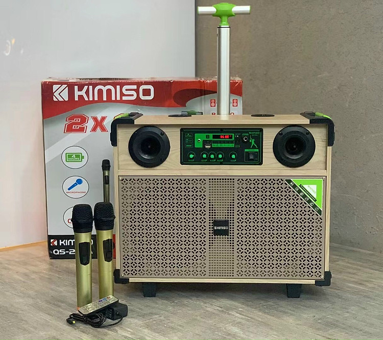 Loa kéo QS 229A - Loa kéo di động bass 2.5 tấc - Kèm 2 micro không dây - Loa kẹo kéo xách tay du lịch - Có remote, đầy đủ kết nối bluetooth, AUX, USB, SD card - Thiết kế vỏ gỗ sang trọng, âm thanh sống động