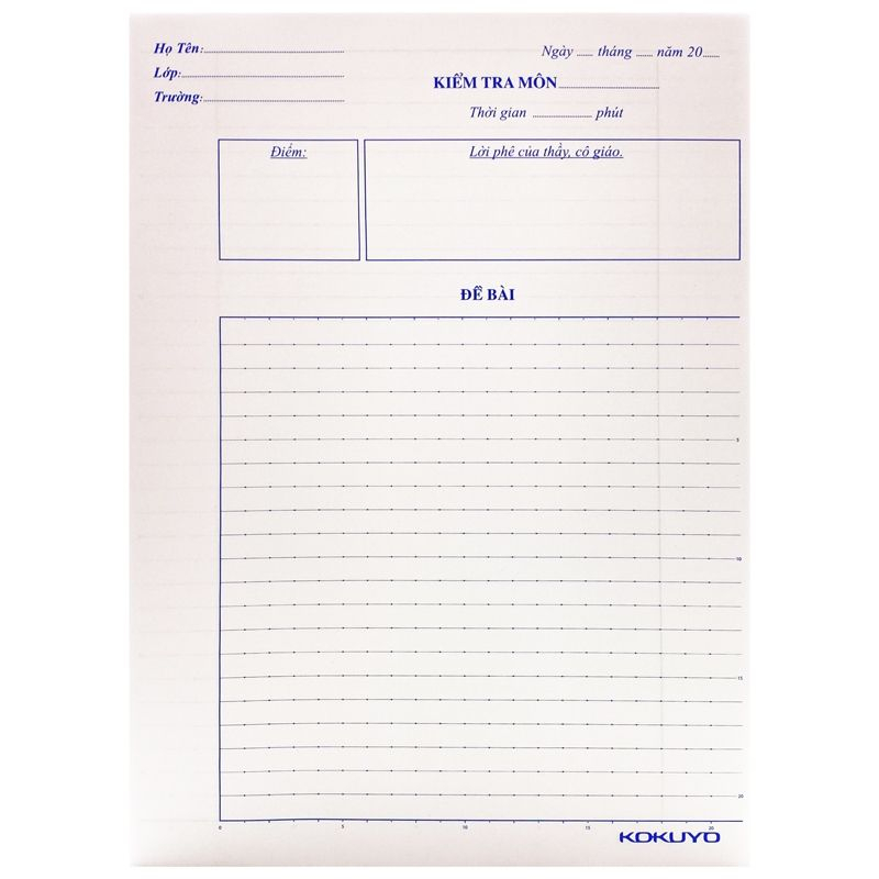 - Túi kiểm tra gồm: 20 tờ đôi + 10 tờ đơn