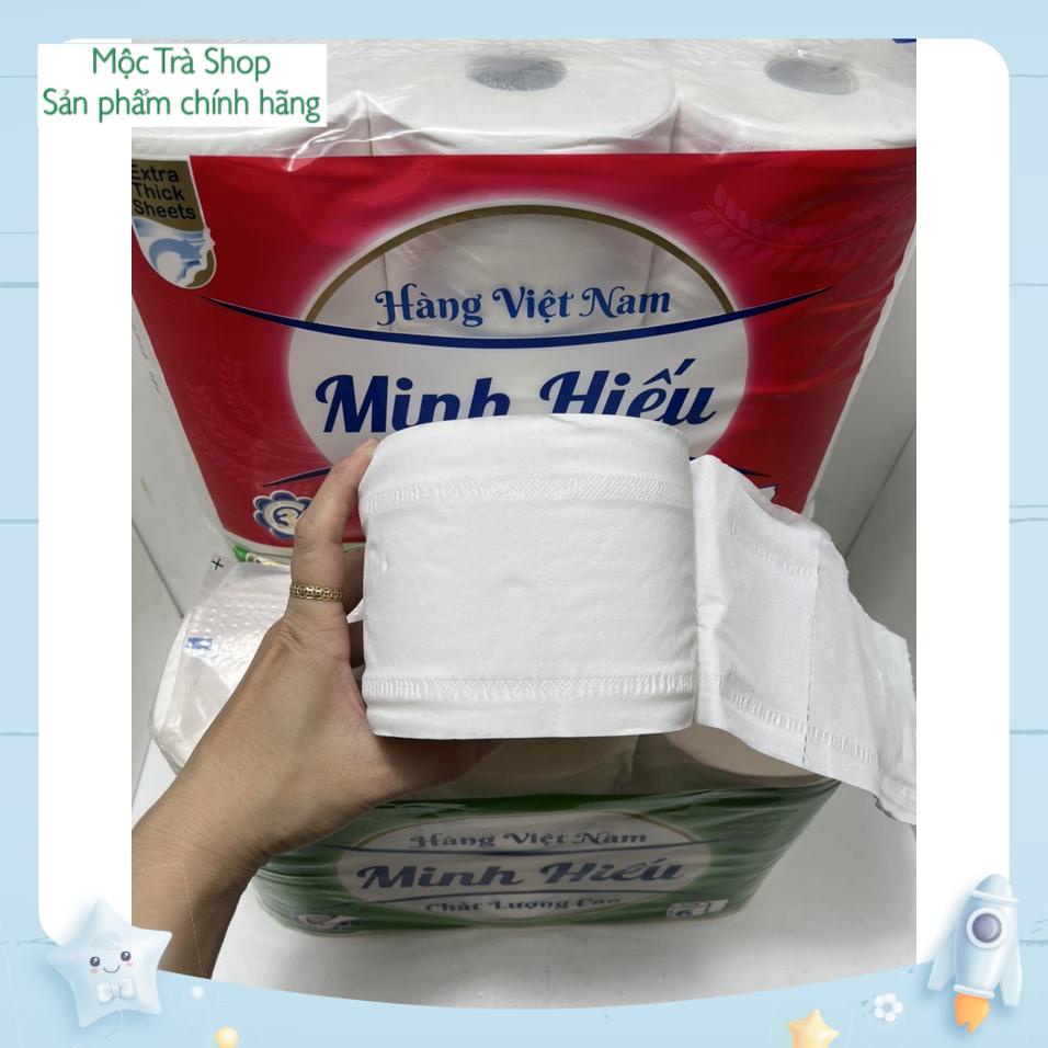 Lốc 6 cuộn giấy vệ sinh lụa 3 lớp mịn, dai có lõi/không lõi Minh Hiếu - 1 lốc 6 cuộn nặng 1kg