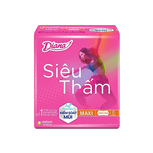 Lốc 6 gói băng vệ sinh Diana siêu thấm Maxi không cánh 8 miếng