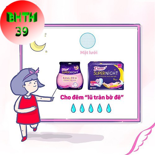 THÔNG TIN THƯƠNG HIỆU Diana là thương hiệu của công ty chuyên sản xuất các sản phẩm chăm sóc phụ nữ và trẻ em tại Việt Nam từ nguyên liệu giấy, bột giấy, như băng vệ sinh, tã giấy, khăn giấy lụa,... Với thế mạnh là thành viên của tập đoàn hàng đầu thế giới Unicharm Nhật Bản cùng dây chuyền sản xuất hiện đại bậc nhất, Diana luôn đi đầu trong việc ứng dụng công nghệ tiên tiến để sáng tạo những sản phẩm có chất lượng cao nhất, phù hợp với nhu cầu của người tiêu dùng Việt Nam. Bao bì thay đổi theo đợt nhập hàng