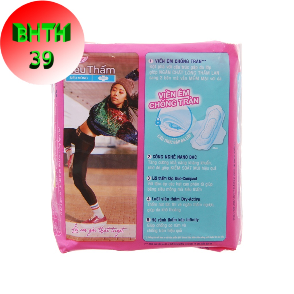 Việc chăm sóc vệ sinh cá nhân luôn là mối ưu tiên hàng đầu của phụ nữ, vì vậy họ luôn mong muốn tìm kiếm một sản phẩm có thể chăm sóc toàn diện việc vệ sinh cá nhân hiệu quả. Bộ 6 gói Băng vệ sinh Diana siêu thấm siêu mỏng cánh (gói 8 miếng) là loại băng vệ sinh đáp ứng các yêu cầu vừa mềm mại, vừa thấm hút tốt, mỏng nhẹ tối đa, êm mềm thoáng sạch cho da. Sản phẩm là sự lựa chọn tốt nhất dành cho phái đẹp sử dụng trong những ngày nhạy cảm.