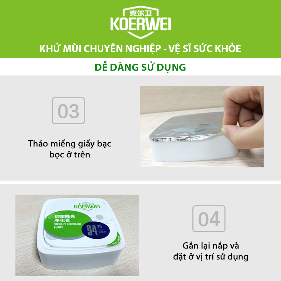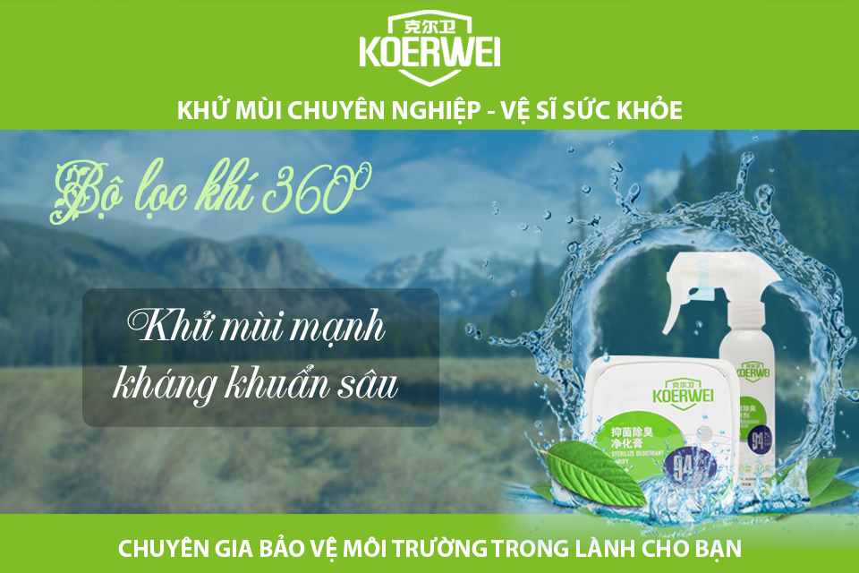 - Thành phần Bộ lọc khí 360 độ KOERWEI: Chất men thảo dược, phân tử khử mùi, nước khử Ion.