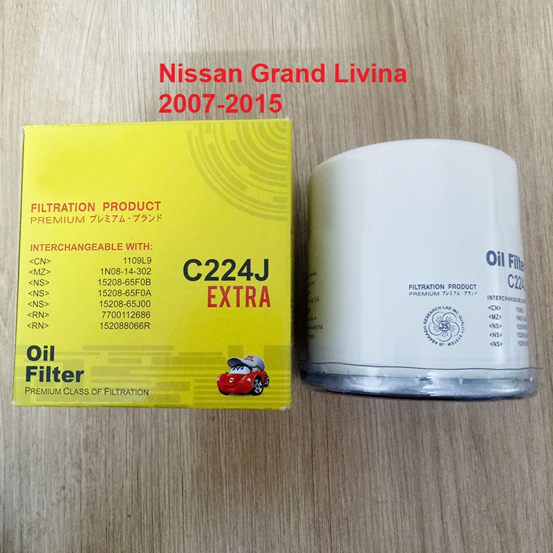 Lọc nhớt C224J dùng cho Nissan Grand Livina 2007, 2008, 2009, 2010, 2011, 2012, 2013, 2014, 2015