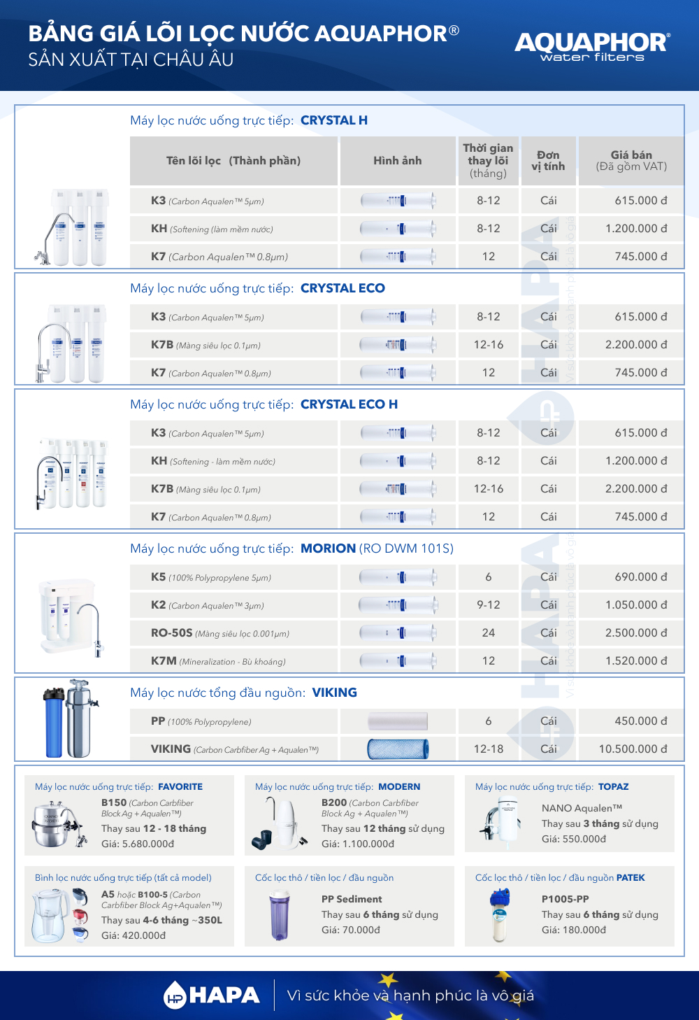 3. BẢNG GIÁ LÕI LỌC NƯỚC AQUAPHOR - FULL MODELS