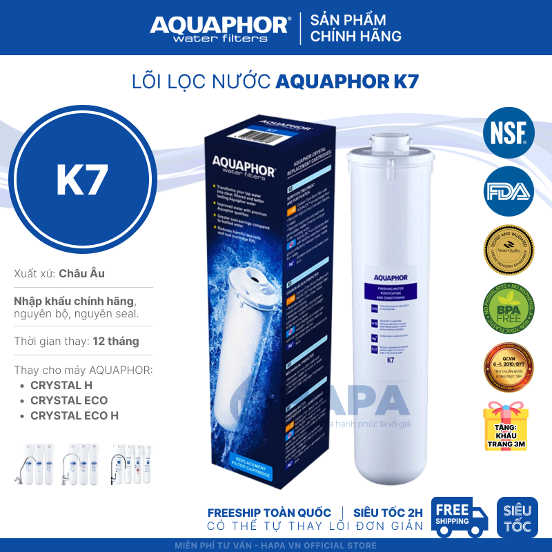 - Tất cả sản phẩm Máy Lọc Nước và Lõi Lọc Nước AQUAPHOR mua tại shop HAPA đạt tiêu chuẩn chất lượng với đầy đủ giấy tờ và chính sách bảo hành chính hãng.