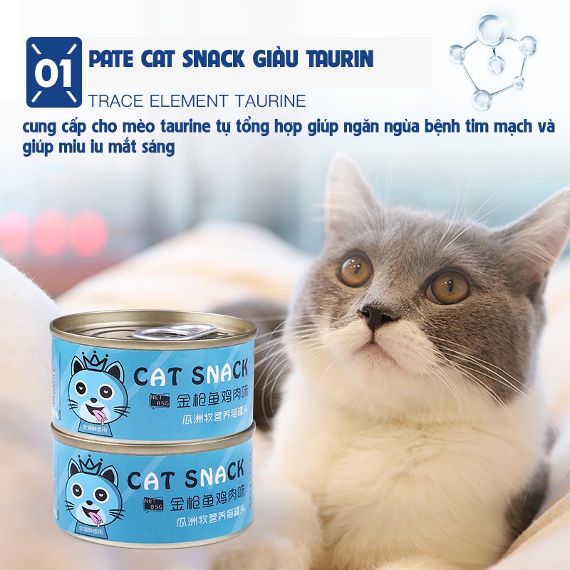 Giới thiệu Lon pate cá hồi cho mèo CAT SNACK giàu omega3 và taurin giúp mèo sáng mắt , mượt lông-170gr