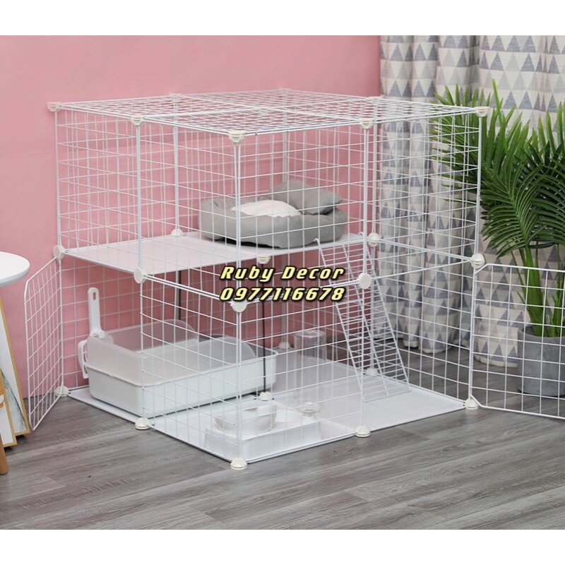 Giới thiệu LỒNG CHUỒNG NUÔI MÈO chất liệu lưới sắt phun sơn tĩnh điện (tặng kèm thang lưới)- Ruby Decor A433