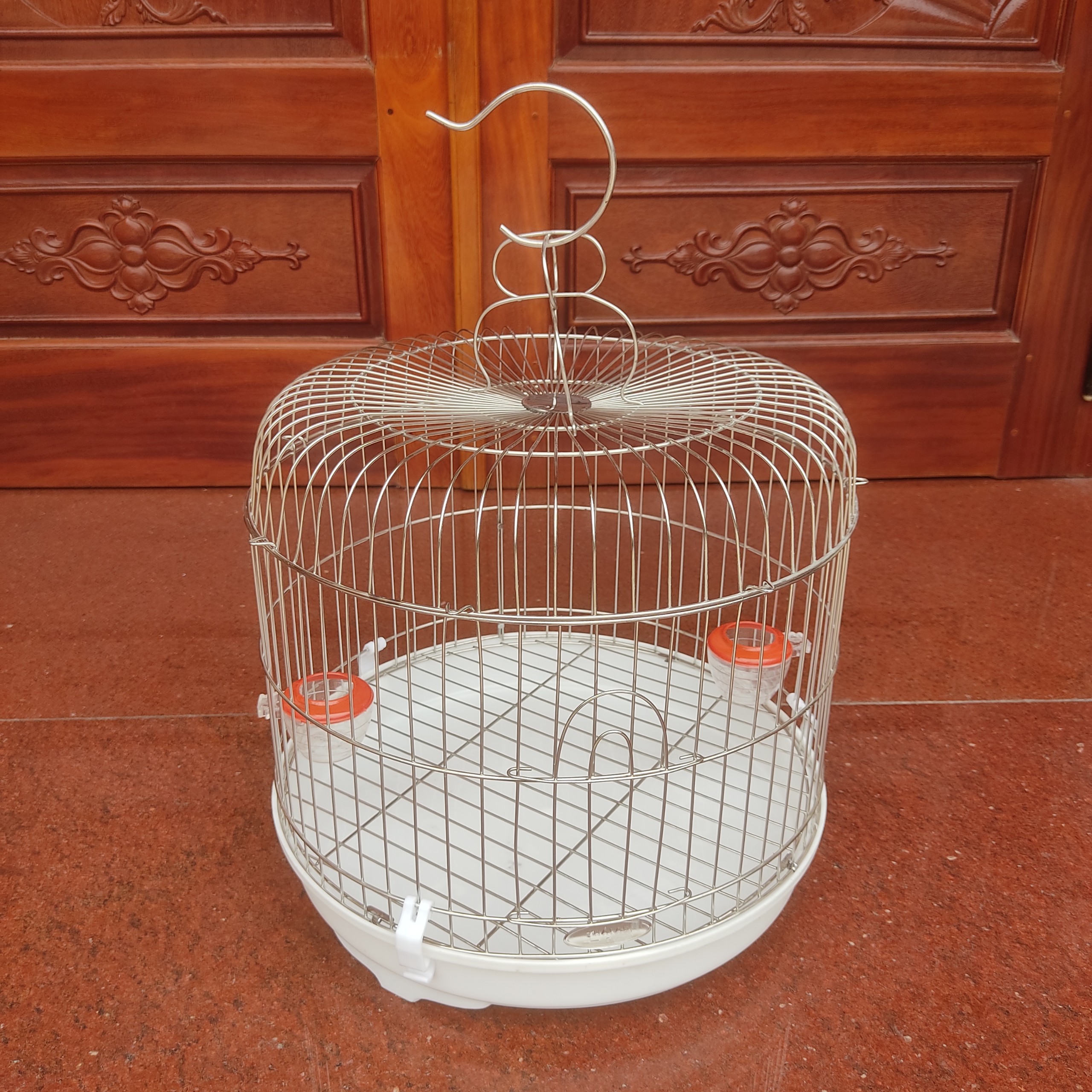 Lồng nuôi chim cu gáy inox hình tròn khay nhựa
