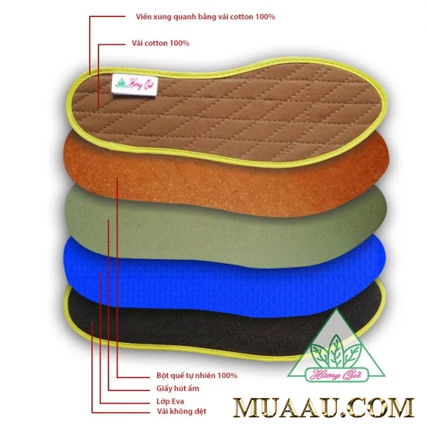 Chất liệu sản phẩm Lót Giày Hương Quế Chính Hãng️Lót Giày Quế Giá Rẻ, Hút Ẩm, Khử Mùi, Điều Hòa Huyệt Đạo Nam Nữ️MuaAu Mall Shop Sỉ Lẻ: