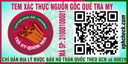Tem xác thực nguồn gốc Quế Trà My – Quảng Nam của cty Hương Quế