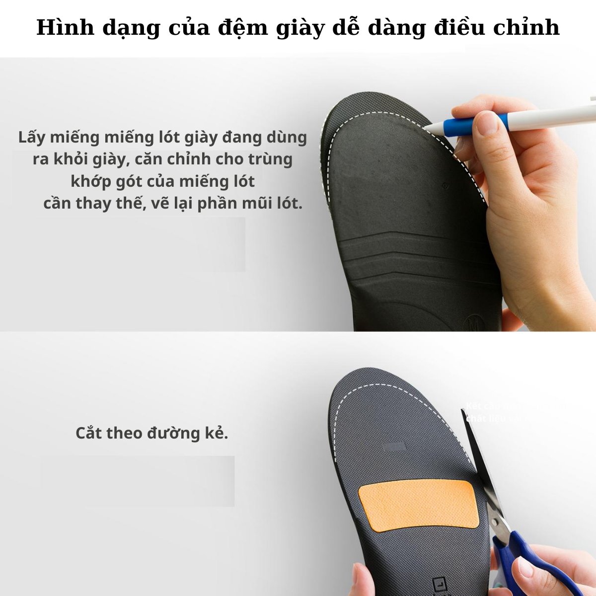 Hãy sử dụng phương pháp điều chỉnh kích thước đế lót giày ở trên.