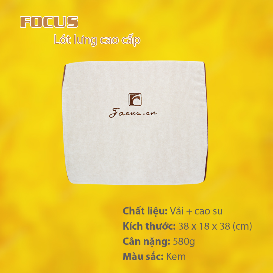- Chất liệu Lót lưng cao cấp FOCUS F-YM01A màu kem: Vải nhung, cao su thiên nhiên.