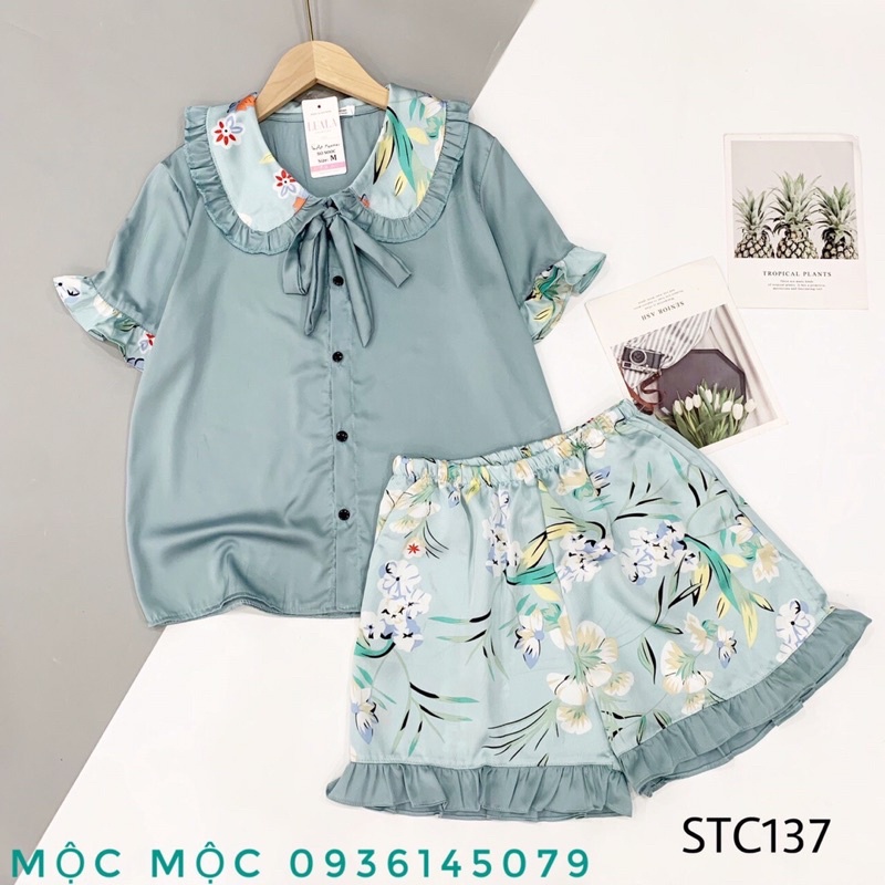 Đồ Bộ Lụa cộc tay cổ tiểu thư *siêu cute* nhé. CHẤT LIỆU : Lụa XUẤT XỨ : VIỆT NAM MÀU SẮC: Phối nhiều Họa Tiết