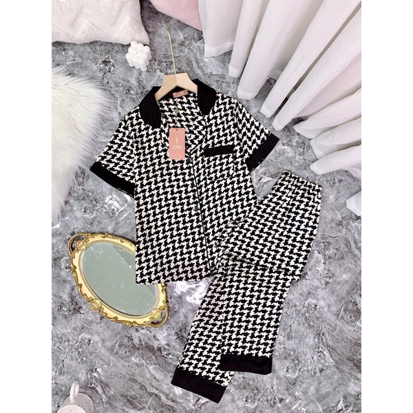 Giới thiệu bộ lụa ngắn tay quần dài kẻ zic zac hãng sam - choco - elegart bộ pizama bộ mặc nhà đẹp giá rẻ nhất shopee