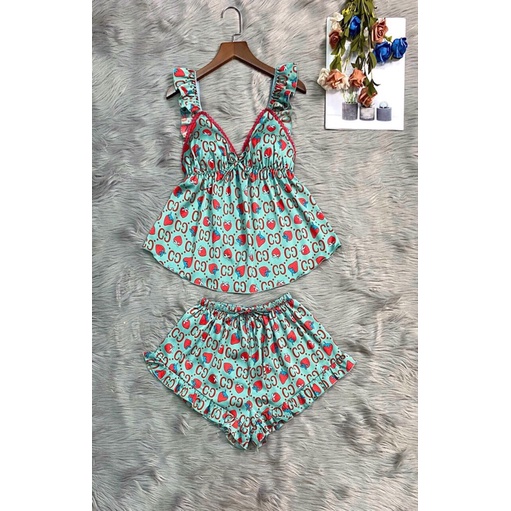 Giới thiệu Bộ lua satin latin cao cấp tay cánh tiên nhí quần đùi bèo freesize 40-57kg
