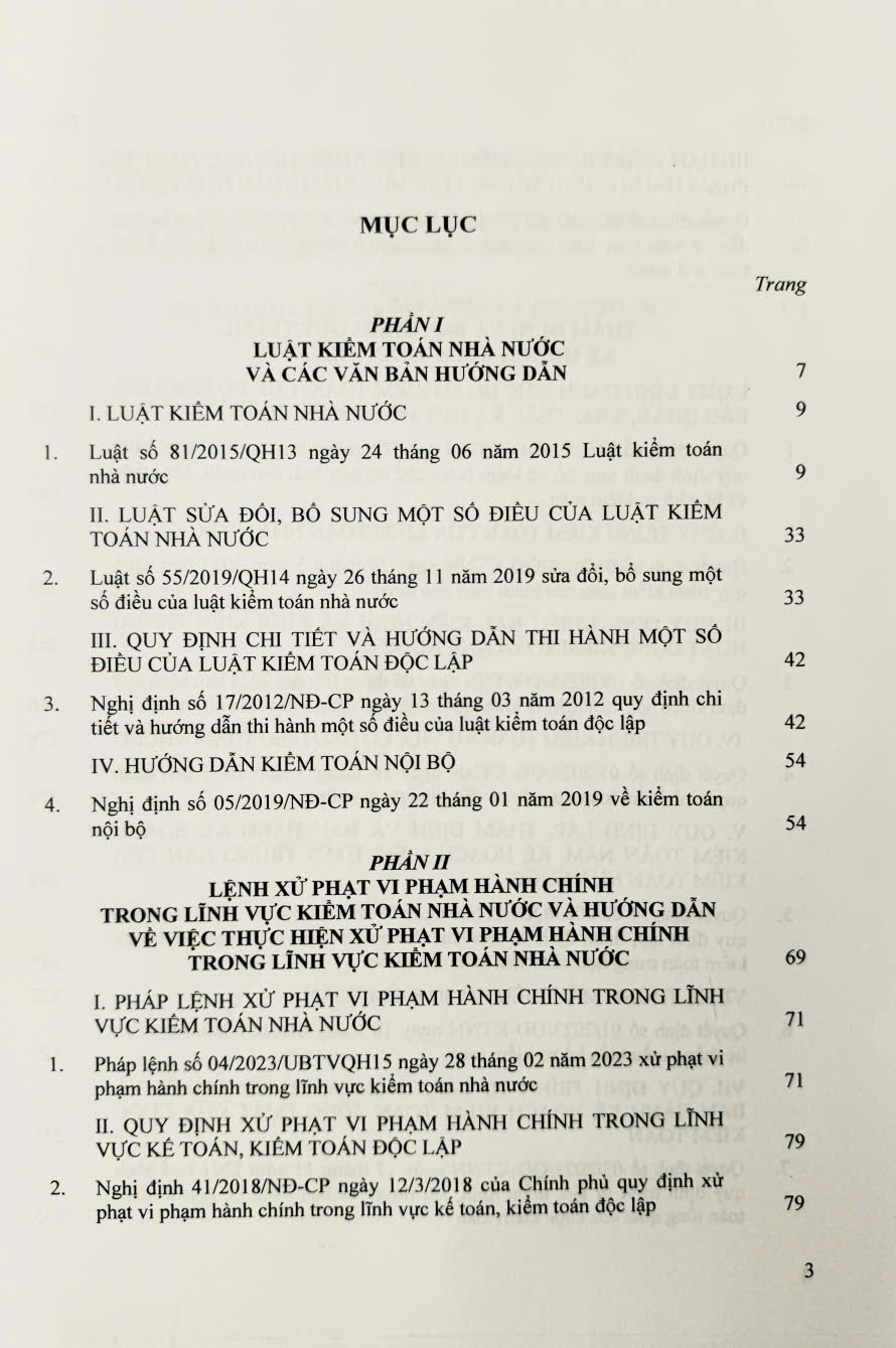 Nhằm phổ biến đến Quý Cơ quan, Đơn vị và Quý khách hàng thân thiết nắm bắt kịp thời những quy định mới nêu trên. Nhà sách pháp luật xin trân trọng giới thiệu cuốn sách: Luật Kiểm Toán Nhà Nước - Pháp Lệnh Xử Phạt Vi Phạm Hành Chính Trong Lĩnh Vực Kiểm Toán, Lập Thẩm Định và Ban Hành Kế Hoạch Kiểm Toán