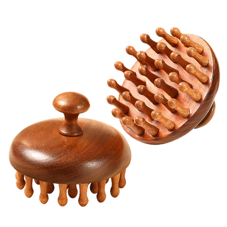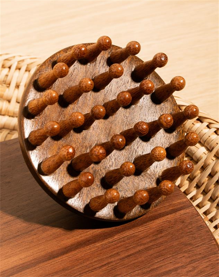 Cầm phần lõm của lược, dùng răng gỗ cào nhẹ da đầu, cổ, gáy hoặc lưng.