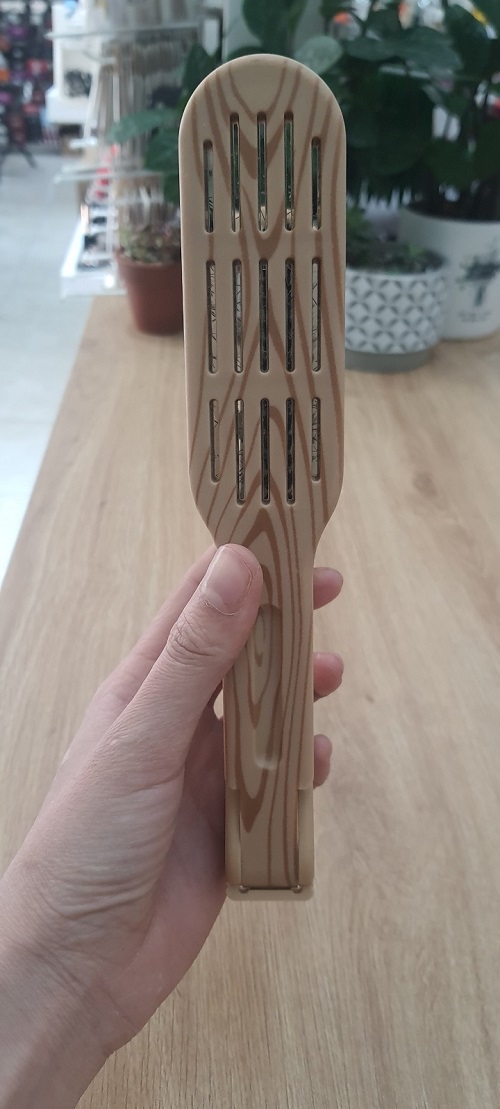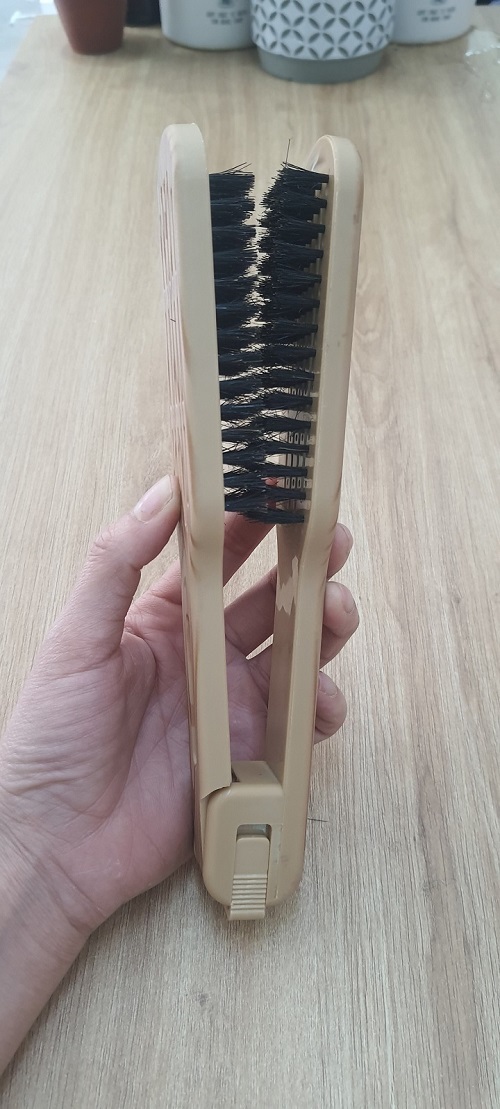 Lược cán gỗ vàng: nhẹ hơn nhựa, dễ bung lò xo nêu bị rơi rớt nhiều lần. Còn 1 -2 lần thì xài vô tư nhé