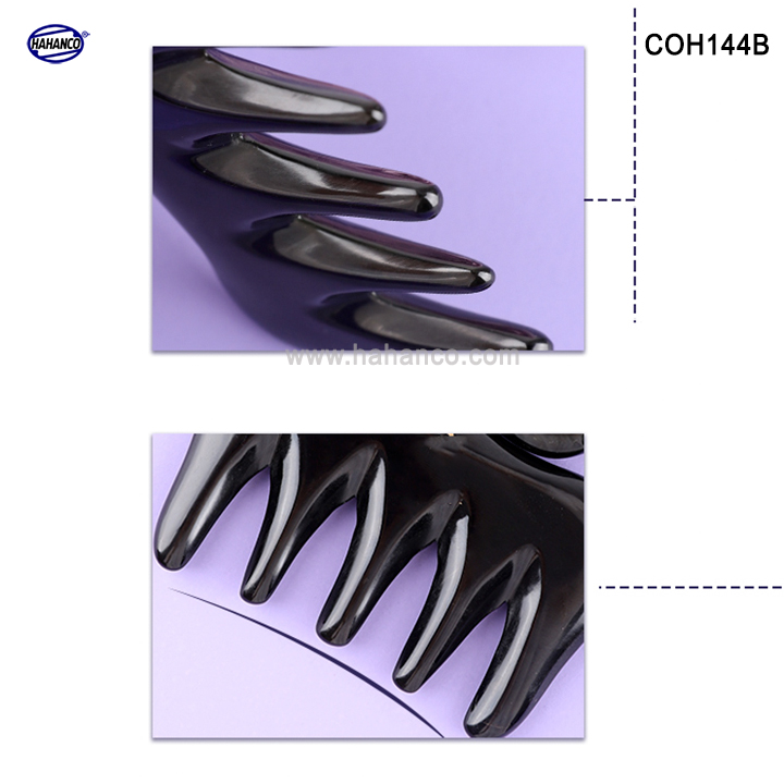 COH144B Đây là chiếc lược sừng đen 5 răng cao cấp đặc biệt, có thể bỏ túi mang theo người, dày và rất đẹp, răng thưa, đầu răng tròn, vừa để chải các loại tóc xoăn, xù, rối và Massage đầu giúp tuần hoàn và lưu thông máu cực tốt, thư giãn sảng khoái, chuôi lược còn có tác dụng điểm huyệt.