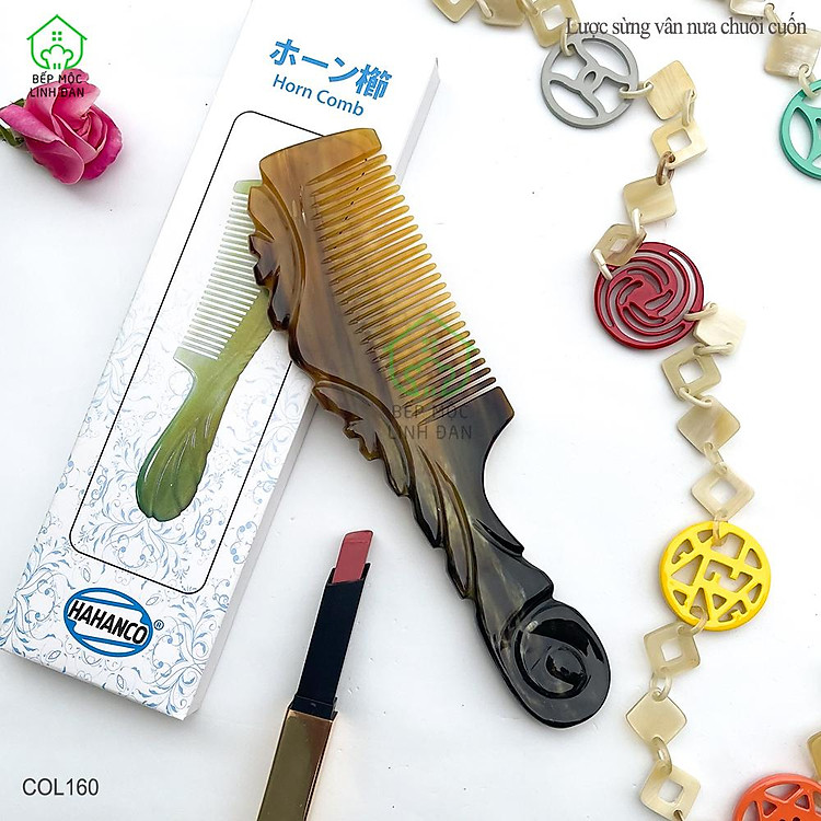 - Đây là mẫu lược sừng vân nưa chuôi cuốn, đường nét họa tiết cổ điển cao cấp, kích thước lớn, với kích thước lớn tiêu chuẩn phổ thông hầu hết trên những chiếc lược, phù hợp với toàn bộ người sử dụng, có thể để bàn trang điểm rất sang. Sản xuất với nhiều công đoạn phức tạp. Được các nghệ nhân của HAHANCO thổi hồn vào chiếc lược này, tạo ra các họa tiết và đường nét uốn lượn sắc sảo, làm cho chiếc lược cổ điển không còn nhàm chán mỗi khi bạn cầm trên tay. Những chiếc răng lược được các bàn tay khéo léo mài dũa từng chiếc một cẩn thận để đạt được độ nhẵn bóng, khi chải tóc sẽ không làm gãy và rụng tóc.