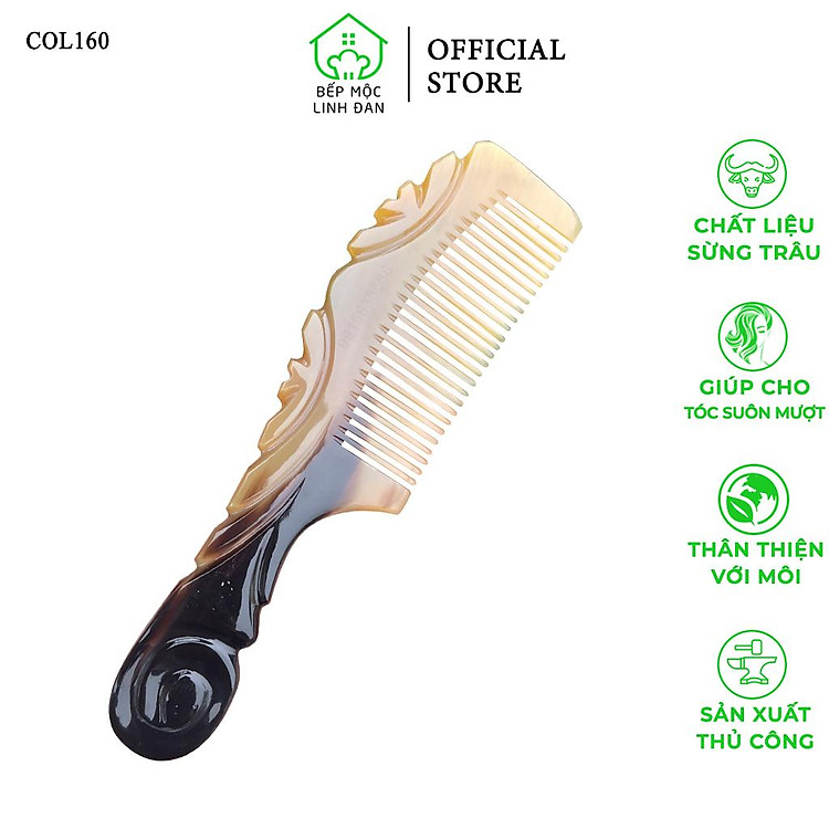 - Vật liệu cao cấp: Dân gian truyền thống với kỹ thuật chế tác hiện đại, mịn màng, màu sắc tự nhiên, không bị điện tĩnh. Chải tóc bằng lược sừng giúp làm dịu tâm trí và làm dịu căng thẳng, có lợi cho sức khoẻ con người. Rất tốt và giúp cải thiện sức khỏe nếu sử dụng hàng ngày.