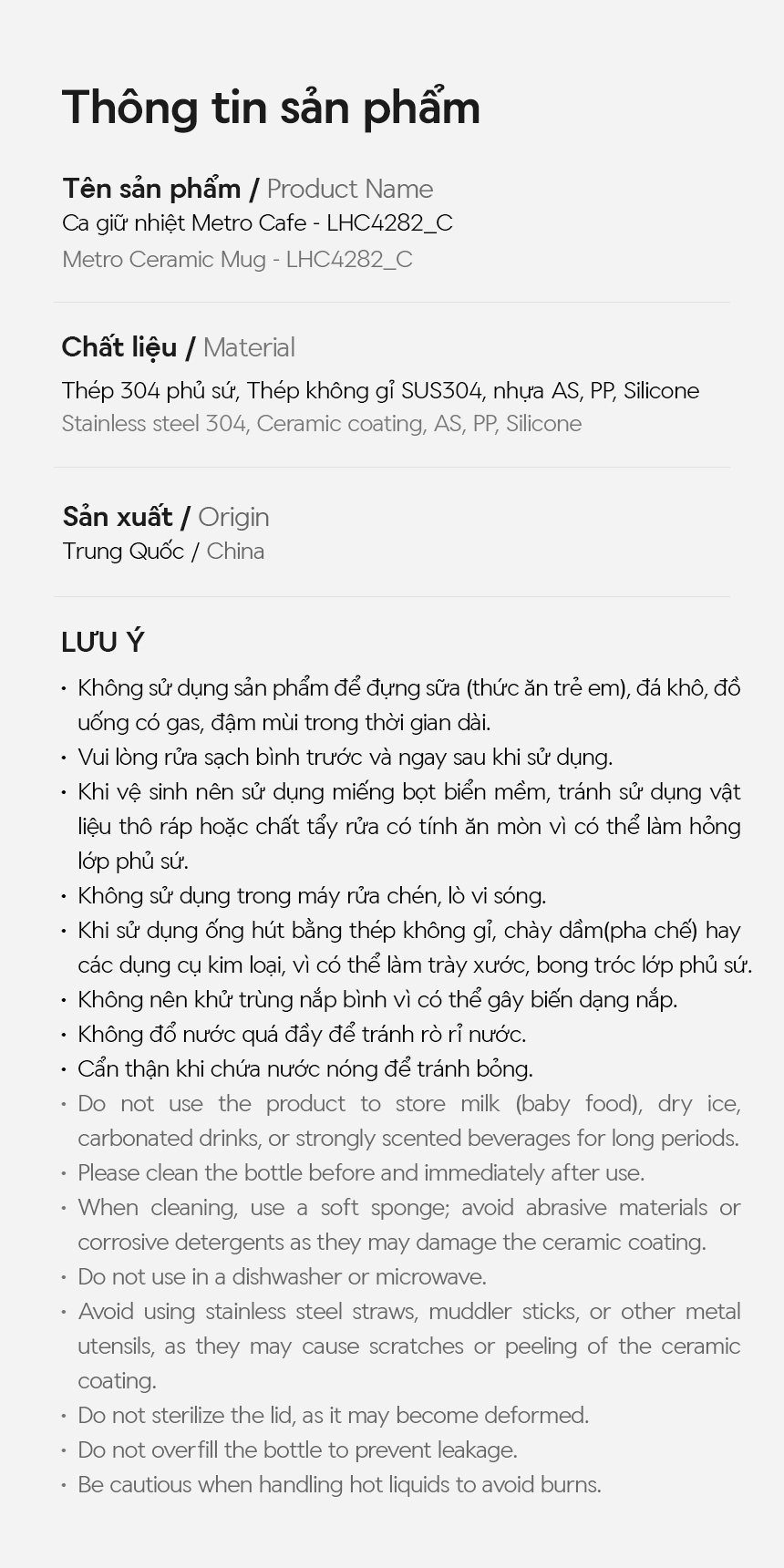 - Không sử dụng sản phẩm để chứa đá khô, đồ uống có ga, đồ uống nhiều muối hoặc các vật liệu có mùi mạnh trong thời gian dài.