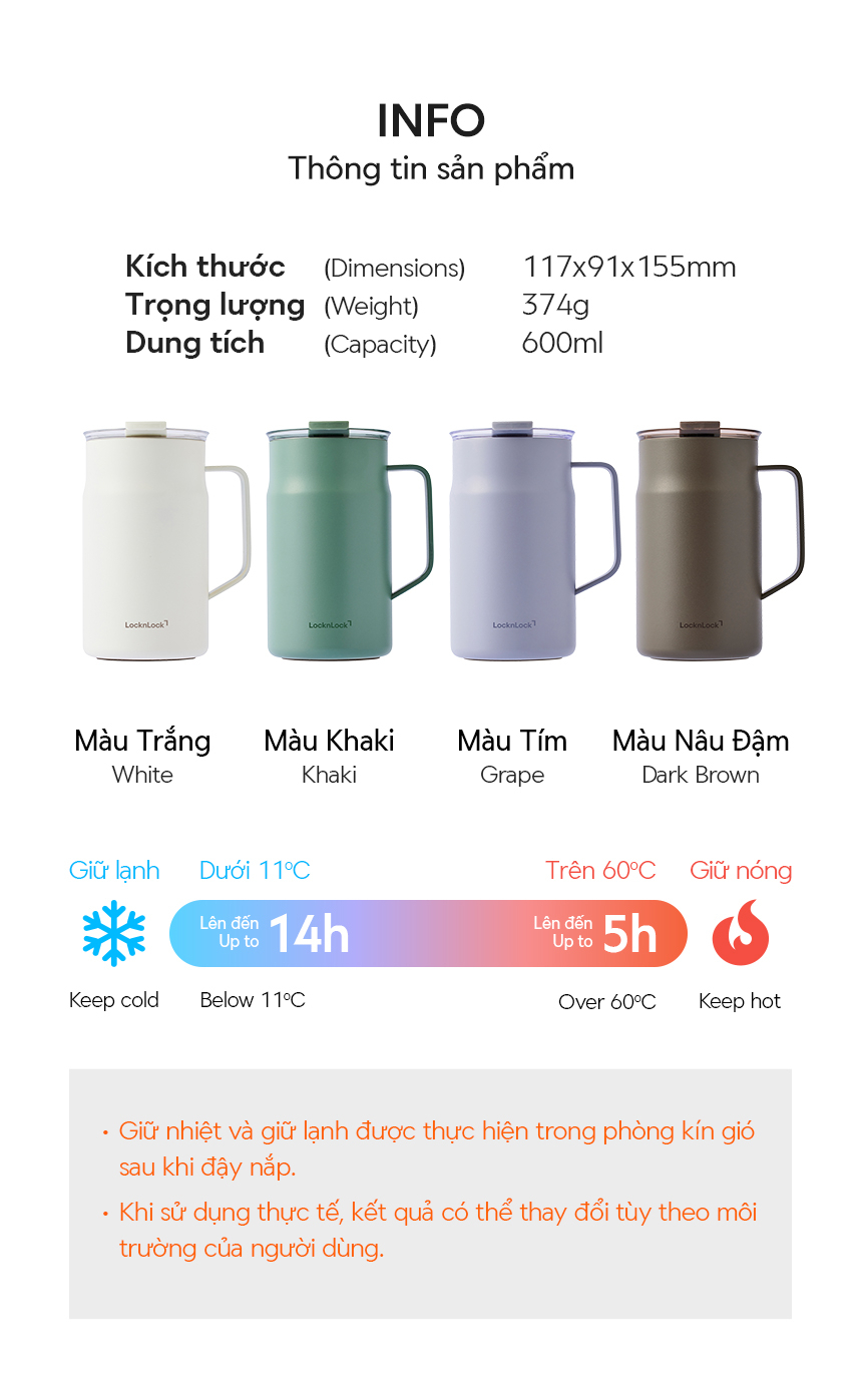 - Giữ nóng (trên 60 độ): 5 tiếng